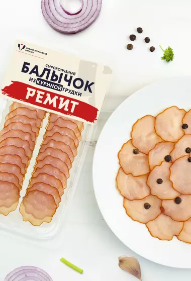 Состав: свинина, вода, посолочно-нитритная смесь (соль, фиксатор окраски: нитрит натрия), регуляторы кислотности (цитрат натрия), антиокислитель аскорбат натрия, стабилизатор полифосфат натрия, сахар, пряность любисток, экстракты пряностей (сельдерей, лук репчатый, черный перец, чили). На предприятии также используются горчица, молоко, орехи, пшеница, сельдерей, соя и яйца.