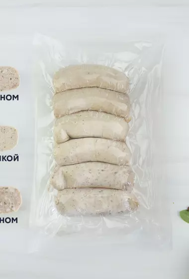 Состав: свинина, вода, крахмал пшеничный, соль нитритная (соль, фиксатор окраски нитрит натрия), стабилизаторы (дигидропирофосфат натрия, полифосфат натрия), регулятор кислотности трифосфат натрия, сахар, усилитель вкуса и аромата глутамат натрия, пряности(тмин, чеснок), антиокислитель изоаскорбиновая кислота, экстракты пряностей (перец черный, перец чили, мускатный орех). Производится на предприятии, где также используются горчица, молоко, орехи, пшеница, сельдерей, соя и яйца.