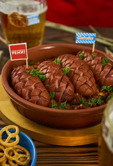 Салат из Мюнхенских колбасок с хрустящими кусочками кренделя