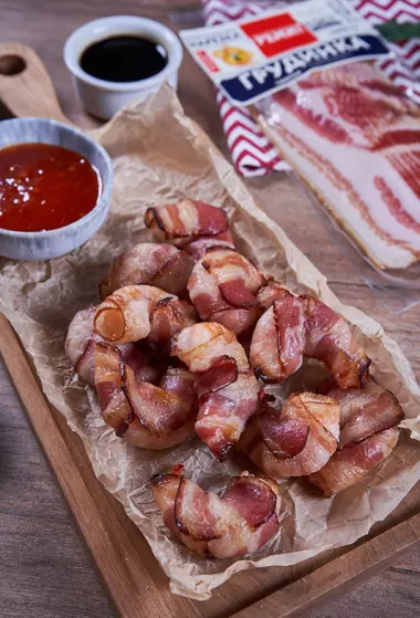 Креветки в грудинке