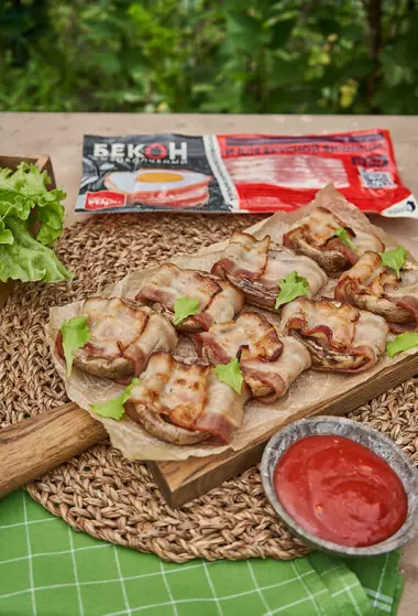 Вкусная закуска: шампиньоны в беконе РЕМИТ на углях