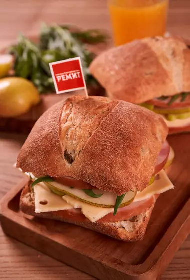 Бутерброд с ветчиной РЕМИТ, сыром и грушей