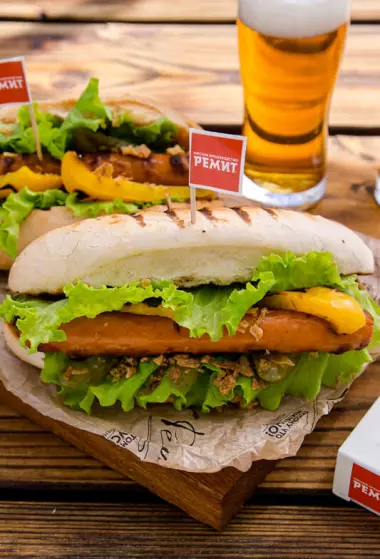 Хот-дог на гриле с колбасками куриными с острым перчиком РЕМИТ